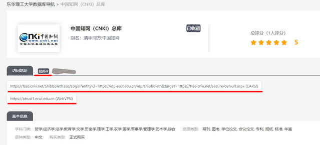在数据库详页,也会根据用户IP是校内还是校外出现不同链接。